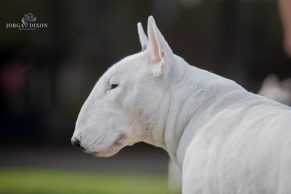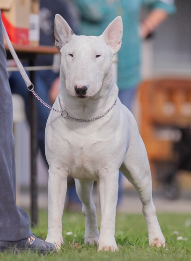 Blade is a sweet natured boy who lives happily with a Miniature Bull Terrier bitch. I have been able to take him to limited shows where he has done quite well.