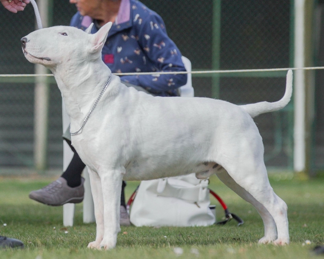 Blade is a sweet natured boy who lives happily with a Miniature Bull Terrier bitch. I have been able to take him to limited shows where he has done quite well.