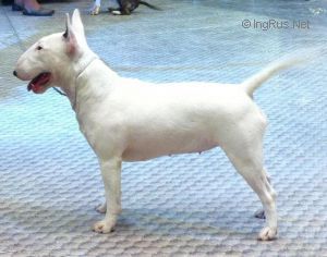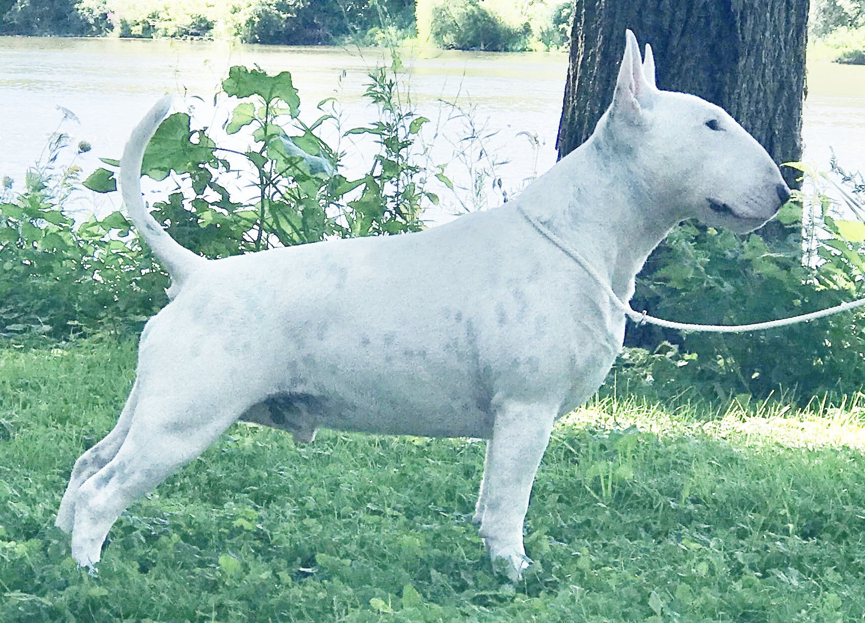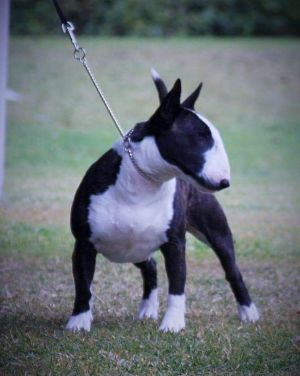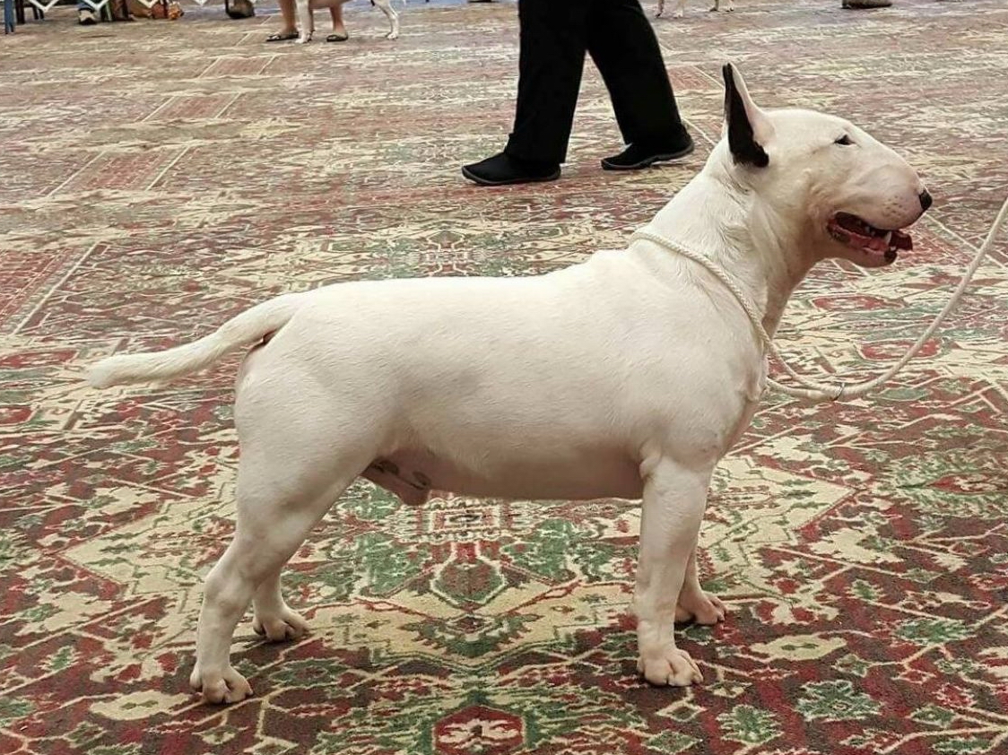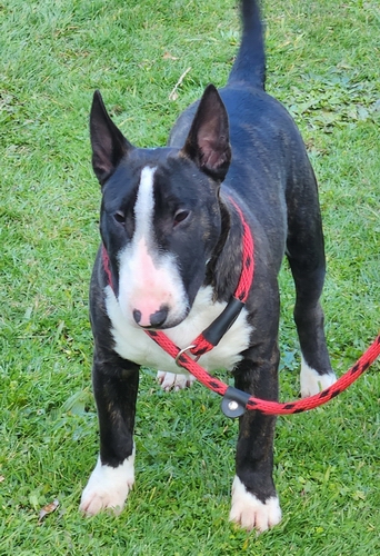 'Havoc' is a Miniature Bull Terrier and lives with his family in Taranaki. They are happy to let me take him out to shows. He is a happy, laid back boy. Still learning the ropes at shows at this stage but he is a quick learner. PLL, LAD clear by DNA. LP carrier.