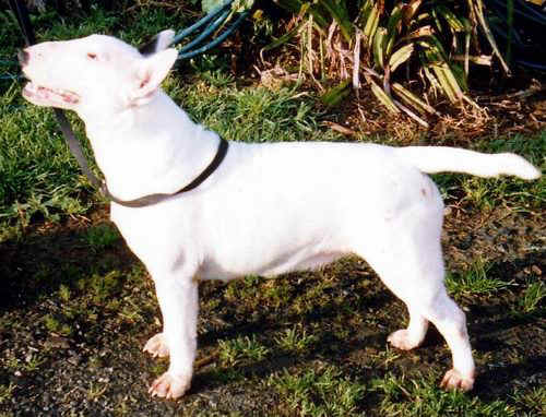 Her only really bad habit was her prejudice toward wandering dogs. If one came into the yard, we usually found out about it from her - she would launch herself into it and we would have to rescue the other animal. It didnt bother her how big or hairy it was, it hadnt been invited in and it was told to leave in no uncertain terms! The last time she did this, she was 11 and the other dog looked (to me anyway) like a huge wolf! I should probably mention the time the neighbour's goat put it's head through the fence for some grass and couldnt get back out due to the Bull Terrier attached to its ear.
